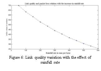 The link quality is observed to be decreasing with increase in rainfall rate.